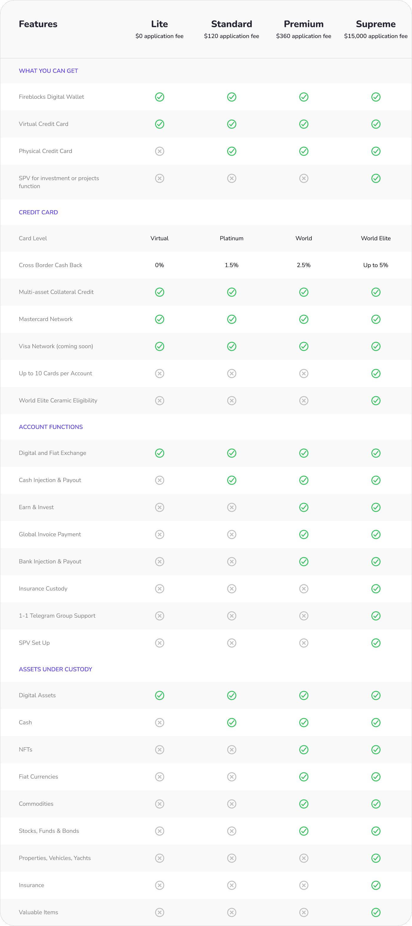 Digital, Fiat, Cash, Properties, Vehicles, Luxury goods, Shares custody