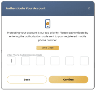 Click “Send Code” & input your Authentication Code,then press ‘Confirm’.