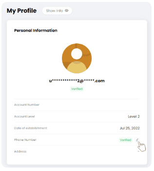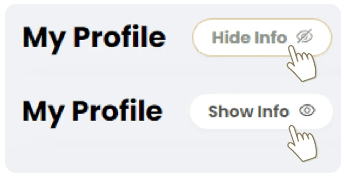 On the "Personal Information" page, you can view your complete/hidden personal information by clicking on “Show Info” or ‘Hide info”