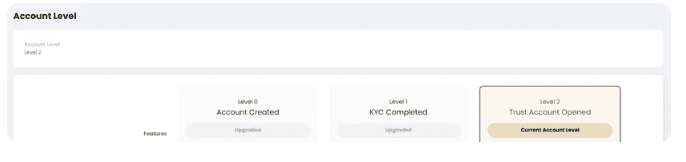 You can check your current account level and features of each account level. You can upgrade to a certain level by clicking ‘Upgrade’ under your desired level and you will need to upload more supporting documents to proceed the upgrade process.