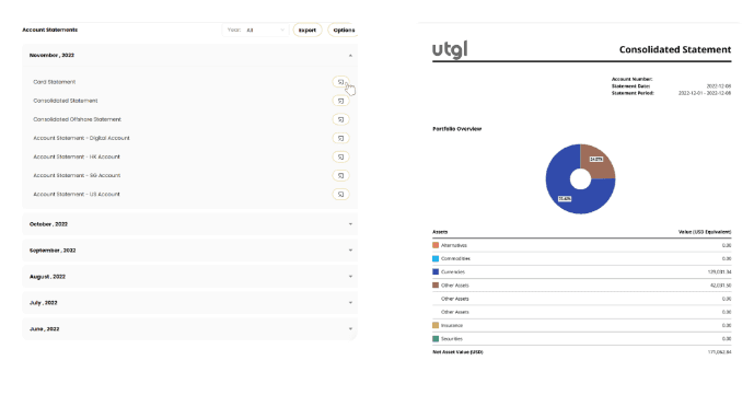 After log in the account, click "Statements" on the right side of the overview page or select “Account Center” choose “ My Profile” on the left menu.
