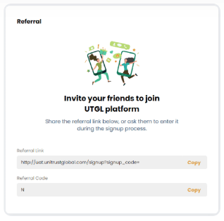 You can share your referral code with your families and friends. Once they sign up with your referral code and trade on our platform, you can get the surprising referral bonus.