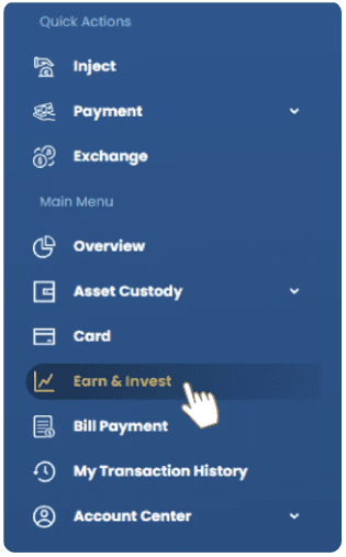 After logging in to your account, select “Earn & Invest” on the left menu.