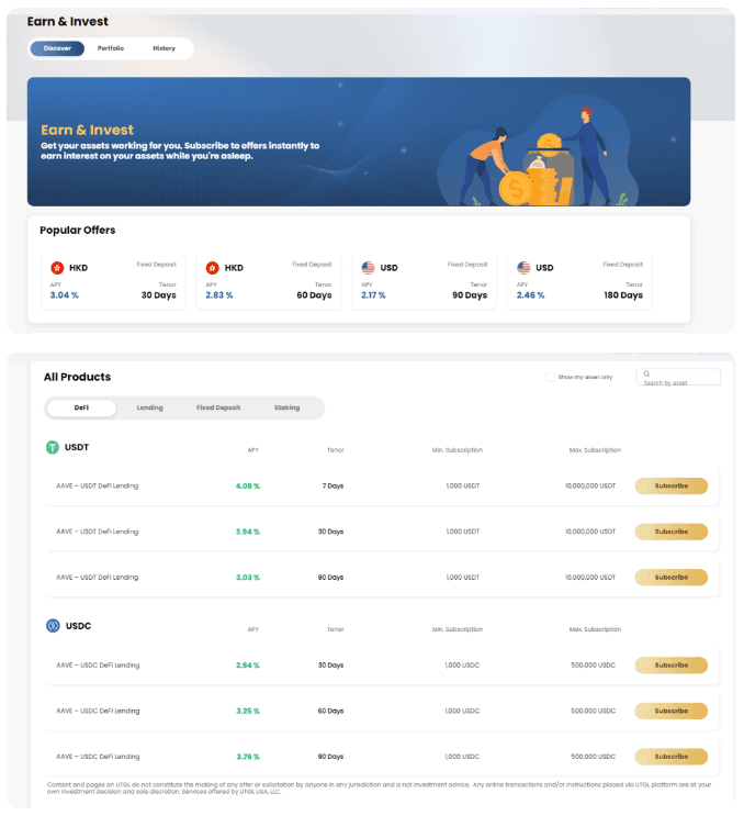 You can subscribe to products through the UTGL platform and view your investments and returns